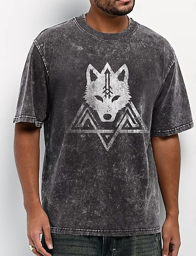 Camiseta masculina com estampa de nó celta tribal, cabeça de lobo, totem viking, lavagem ácida, estilo streetwear vintage, manga curta, gola redonda, casual, para uso diário, de grife, tamanhos P, M,