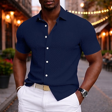 Homens Camisa Social Camisa casual camisa de botão Camisa Jacquard Azul Preto Branco Rosa Caqui Manga Curta Tecido Colarinho de Camisa Casual Diário Puro Roupa Elegante Moda Casual