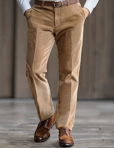 Homens Social Calças de Veludo Calças de inverno chinês Côr Sólida Comprimento total Formal Casamento Ao ar livre Elegante Férias Cáqui Micro-Elástica