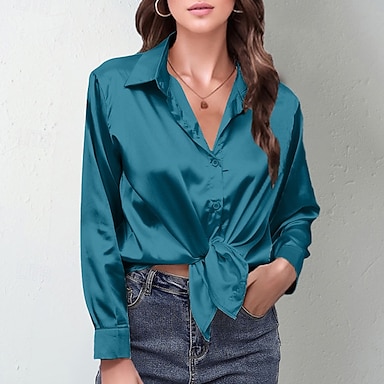 Mulheres Camisa Social Elegant Elegante Top de cetim Botões Tecido à moda Casual Manga Longa Colarinho de Camisa Tops regulares Diário Para Noite Preto Vermelho Azul Marinha Azul Real Bege Primavera