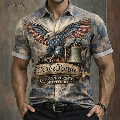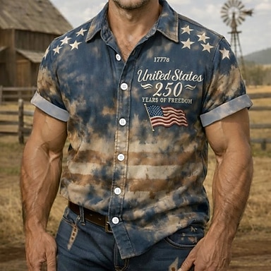 Dia da Independência Homens 4 de julho - 250º aniversário dos EUA Bandeira dos EUA Patriótico Camisa Social camisa de verão camisa de botão Manga Curta Moda Casual Feriado Verão Primavera Aberto para