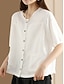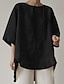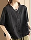 Mulheres Camisas de algodão e linho Blusa Linho de algodão sintético Patchwork Botões Tecido Vintage à moda Meia Manga Gola Redonda Tops regulares Diário Feriado Para Noite Preto Branco Rosa Verão