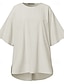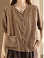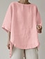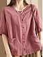 Mulheres Blusa Linho de algodão sintético Bolsos Botões Tecido à moda Casual Meia Manga Gola Redonda Tops regulares Diário Preto Branco Rosa Verde Cáqui Verão Primavera