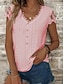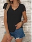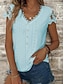 Mulheres Blusa Renda Ilhó Botões Côr Sólida à moda Básico Casual Manga Curta Decote V Tops regulares Diário Azul Preto Branco Verde Claro Rosa Verão Primavera