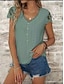 Mulheres Regata de cetim Camiseta T-shirt Frufru Botões Tecido Elegante Moda à moda Sem Manga Gola Redonda Tops regulares Diário Para Noite Final de semana Dourado Verão Primavera