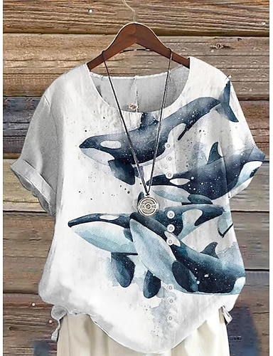 Mulheres Blusa Botões Imprimir Gráfico Animal Vintage Tropical à moda Manga Curta Tops regulares Feriado Azul Roxo Verão Primavera