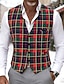 Homens Colete Gilet Casual Ao ar livre Férias Festa Moda Roupa de rua Primavera Outono Botões Polyester Respirabilidade Xadrez Não Trespassado Decote V Moderno Vermelho Colete