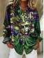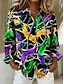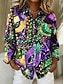 Carnaval Mulheres Camisa Social Blusa Patchwork Botões Imprimir Gráfico Abstrato Vintage à moda Casual Manga Longa Decote V Colarinho de Camisa Tops regulares Diário Preto Roxo Claro Roxo Verde Verão