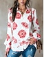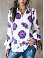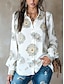Mulheres Camisa Social Bolsos Botões Imprimir Floral à moda Casual Manga Longa Colarinho de Camisa Tops regulares Diário Branco Roxo Verde Cáqui Verão Primavera Outono