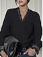 Mulheres Camisa Social Blusa Linho de algodão sintético Patchwork Botões Guarnição do laço Tecido Elegante à moda Básico Manga Longa Decote V Tops regulares Diário Feriado Para Noite Preto Branco