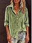 Mulheres Blusa Botões Côr Sólida à moda Casual Manga Longa Colarinho de Camisa Tops regulares Diário Azul Rosa Roxo Verde Primavera Outono