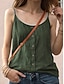 Mulheres Camiseta Linho de algodão sintético T-shirt Botões Tecido Moda à moda Clássico Sem Manga Correias Tops regulares Diário Para Noite Final de semana Verde Verão Primavera