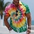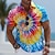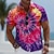 Homens Hippie Cor gradiente Impressão Tie Dye Camisa Social camisa de botão Manga Curta Moda Casual Streetwear Férias Verão Primavera Aberto para a Lateral Impressão 3D camisas de colarinho Azul Roxo