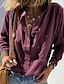 Mulheres Camisa Social Blusa Botões Tecido Vintage à moda Básico Manga Longa Decote V Colarinho de Camisa Tops regulares Diário Feriado Para Noite Vinho Verão Primavera