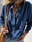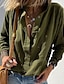 Mulheres Camisa Social Blusa Botões Tecido Elegante à moda Manga Longa Colarinho de Camisa Tops regulares Feriado Para Noite Vermelho Azul Real Marron Verde Primavera Outono Inverno
