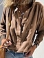 Mulheres Veludo Elegant Elegante Blusa Botões Côr Sólida Tecido Elegante à moda Casual Manga Longa Decote V Tops regulares Diário Feriado Para Noite Azul Marron Primavera Outono