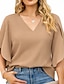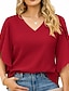 Mulheres Camisa Social camisa de verão Camisa casual Tops de chiffon Botões Côr Sólida Tecido Elegante Férias Moda Meia Manga Decote V Tops regulares Diário Feriado Para Noite Preto Vermelho Cáqui