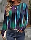 Mulheres Camiseta Botões Imprimir Em Camadas Gráfico Gradiente Vintage à moda Clássico Manga Longa Gola Redonda Tops regulares Diário Azul Vermelho Verde Primavera Outono Inverno