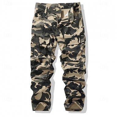 Homens Calças Cargo Calças Botões Bolso multi Tecido Côr Camuflagem Vestível Ao ar livre Diário Acampar e Caminhar Moda Clássico Camuflado