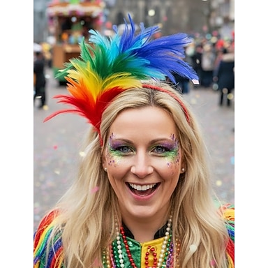 Faixas de cabelo com penas para mulheres no Mardi Gras em várias cores vibrantes e divertidas perfeitas para Carnaval e Bailes de Máscaras