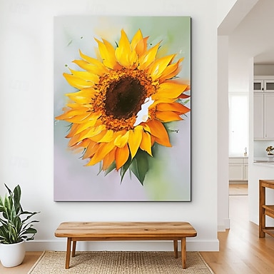 Pintura a óleo feita à mão, pintura colorida de girassol em tela, pinturas de flores coloridas, arte de parede, arte em tela de girassol, pintura artística colorida, pintura de flor