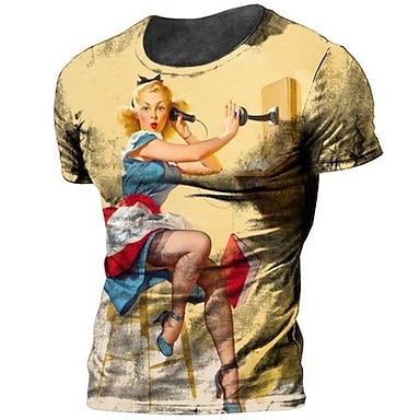 Homens Côr Camuflagem Camiseta Manga Curta Camiseta Impressão 3D Gola Redonda Camisa Retro Vintage Vintage retrô Festa Rua Casual Verde Verão Primavera Todas as Estações Roupa S M L XL XXL XXXL 4XL