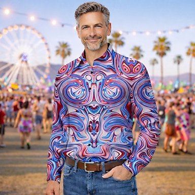 250º Aniversário EUA Retro Vintage Anos 70 Camisa Camisa Aloha Manga Comprida Hippie Geométrico Étnico Fantasia Homens Baile de Máscaras 4 de julho Festa Dia da Independência Adulto Camisa