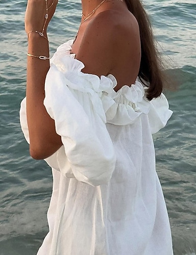 Mulheres Vestido Longo Vestido Maxi Linho de algodão sintético Vestido de turno Vestidos Para o Verão Vestido casual Moda Manga lanterna Ao ar livre Feriado Encontro Normal Tecido Sem Manga Ombro a