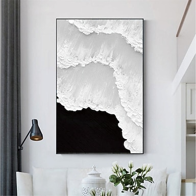 Pintura a óleo pintada à mão arte da parede abstrato preto branco oceano tecer decoração decoração de casa decoração pintura em tela para sala de estar