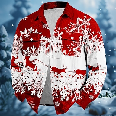 Natal Homens Floco de Neve Camisa Social Camiseta de Veludo Jaqueta Camisa Manga Longa Moda Casual Rua Dia a Dia Outono & inverno Aberto para a Lateral Camisas de colarinho Botões Impressão 3D 2