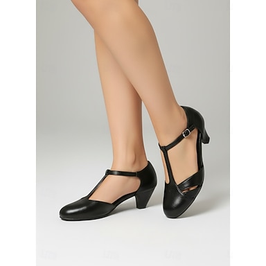 Sapatos Mary Jane femininos estilo anos 20, em couro sintético preto, inspirados no Grande Gatsby - modelo vintage flapper com tira em T, salto médio e bico fechado, perfeitos para festas e danças