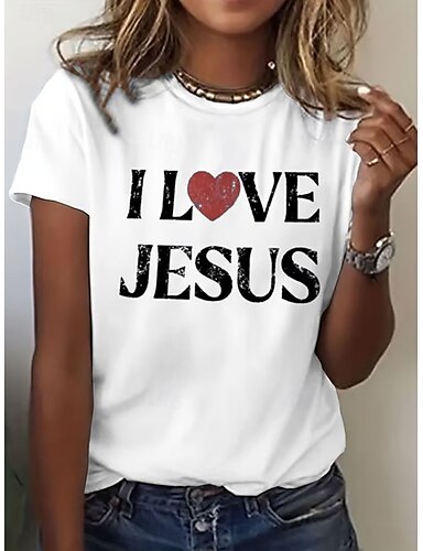 Mulheres Camiseta Imprimir Coração Gráfico Time de futebol à moda Clássico Casual Manga Curta Gola Redonda Decote Redondo Tops regulares Casual Diário Azul Preto Branco Vermelho Verão Primavera