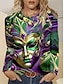 Camiseta Feminina de Carnaval Gráfica Vintage Fashion Estilosa de Manga Longa Gola Careca Regular Tops Diários de Final de Semana Impressão Verde Verão Primavera Outono