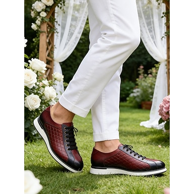 Sapatos Oxford masculinos em couro legítimo – sapatos Oxford vermelhos de couro bovino com cadarço para casamentos, ocasiões formais e eventos de negócios.