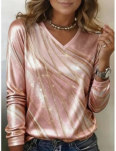 Mulheres Camiseta Gráfico Abstrato Elegante Vintage Moda Manga Longa Decote V Tops regulares Diário Traje de festa para noite Rosa Primavera Outono