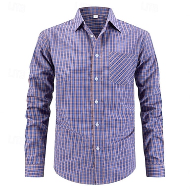 Homens Camisa Social Saia camisa de botão Xadrez Casamento Diário Azul Azul Céu Azul Escuro Manga Longa Aberto para a Lateral Primavera Outono Roupa Bolso frontal