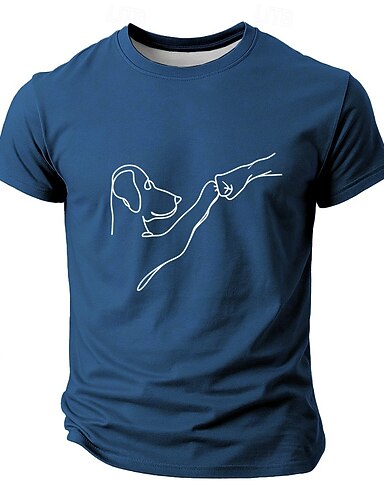 Camiseta Gráfica Masculina com Patas de Cão e Mão Camiseta de Amor por Animais de Manga Curta