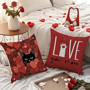 Capa de almofada com estampa de gato para o Dia dos Namorados, almofada decorativa com design de coração, perfeita para sofá, sala de estar, quarto, ideal para criar uma atmosfera romântica e