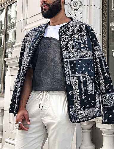 Homens jaqueta leve Formal Casa Estilo Floral Primavera Outono Inverno Floral Gráfico Vintage Moda Padrão Preto Casaco