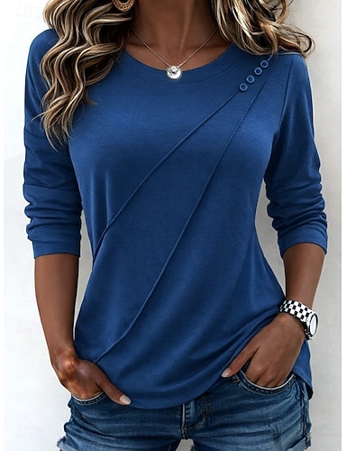 Mulheres Blusa Botões Côr Sólida Diário à moda Básico Manga Longa Gola Redonda Tops regulares Diário Azul Preto Amarelo Vermelho Primavera Outono