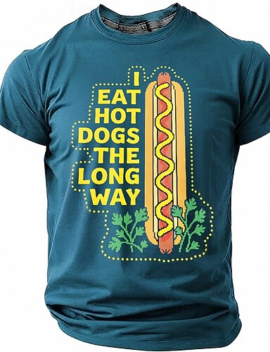 Camiseta masculina "Eu como cachorro-quente do jeito mais comprido" - Meme engraçado e sarcástico - Gola redonda, manga curta - Presente divertido para namorado - Cor: Azul-petróleo - Roupa de grife
