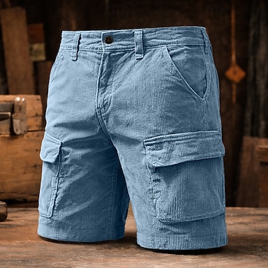 Homens Bermuda Cargo Calção Shorts casuais Shorts de veludo cotelê Shorts texturizados Bolsos Textura Tecido Comprimento do joelho Casual Ao ar livre Streetwear Moda Roupa de rua Preto Vinho