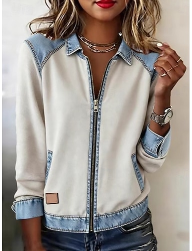 Mulheres Camisa casual Blusa Patchwork Zíper Côr Sólida à moda Básico Casual Manga Longa Aberto para a Lateral Tops regulares Diário Ao ar livre Streetwear Branco Primavera Outono Inverno
