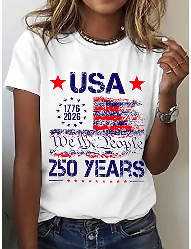 Dia da Independência Americana Mulheres Camiseta Imprimir Gráfico Bandeira americana Moda à moda Clássico Manga Curta Gola Redonda Tops regulares Casual Diário Azul Branco Rosa Verão Primavera