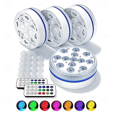 Conjunto de 4 luzes submersíveis RGB para piscina com controle remoto, à prova d'água, para decoração de piscinas, banheiras e fontes.