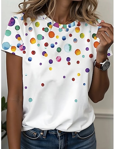 Mulheres Camiseta Imprimir Gráfico Cores Gradiente Abstrato Vintage à moda Clássico Manga Curta Decote V Tops regulares Diário Verde e Azul Arco-íris Cinzento Escuro Verão Primavera