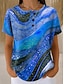 Mulheres Camiseta Imprimir Gráfico Abstrato Vintage à moda Clássico Manga Curta Gola Redonda Tops regulares Diário Final de semana Azul Cinzento Escuro Verão Primavera