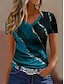 Mulheres Camiseta Imprimir Âmbar Gráfico à moda Casual Manga Curta Decote V Tops regulares Diário Azul Vermelho Roxo Verde Verão