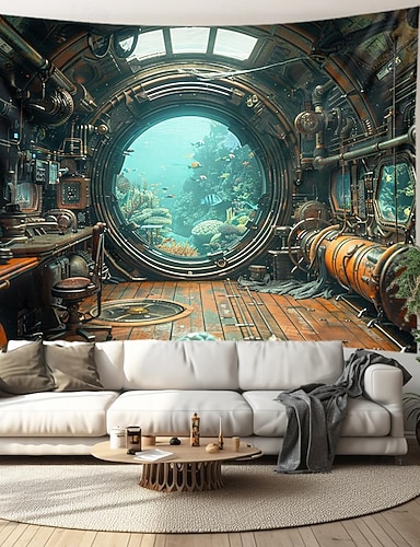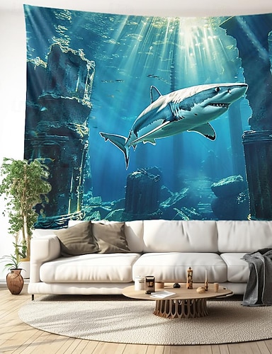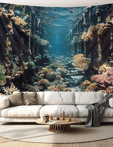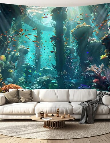 Escada subaquática tapeçaria suspensa arte de parede grande tapeçaria mural decoração fotografia pano de fundo cobertor cortina casa quarto sala de estar decoração peixe paisagem