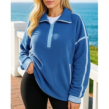 Mulheres Cor Sólida Moletom com capuz Tops casuais Outono Folgado Quarter Zip Manga Longa Roupa Esportiva Corrida Exterior Viagem Férias Preto Branco Azul Roupa de esporte Roupas Esportivas